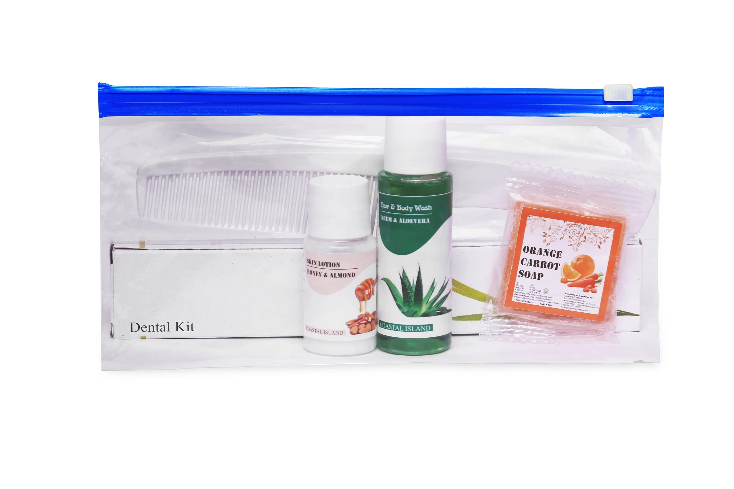- Complete essentials: Dental kit, shaving kit, shower cap, comb, soap, shampoo, body wash, conditioner, and disposable slippers.