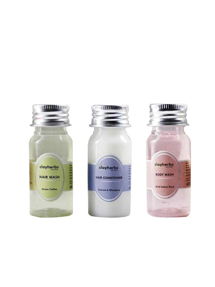 TESX Industries Best Hotel Room Toiletries Set: 3-piece premium amenities including shampoo, shower gel, and moisturiser, 20 ml each. For hotels and resorts looking to add that little bit of comfort and hygiene to guest bathroom amenities.
