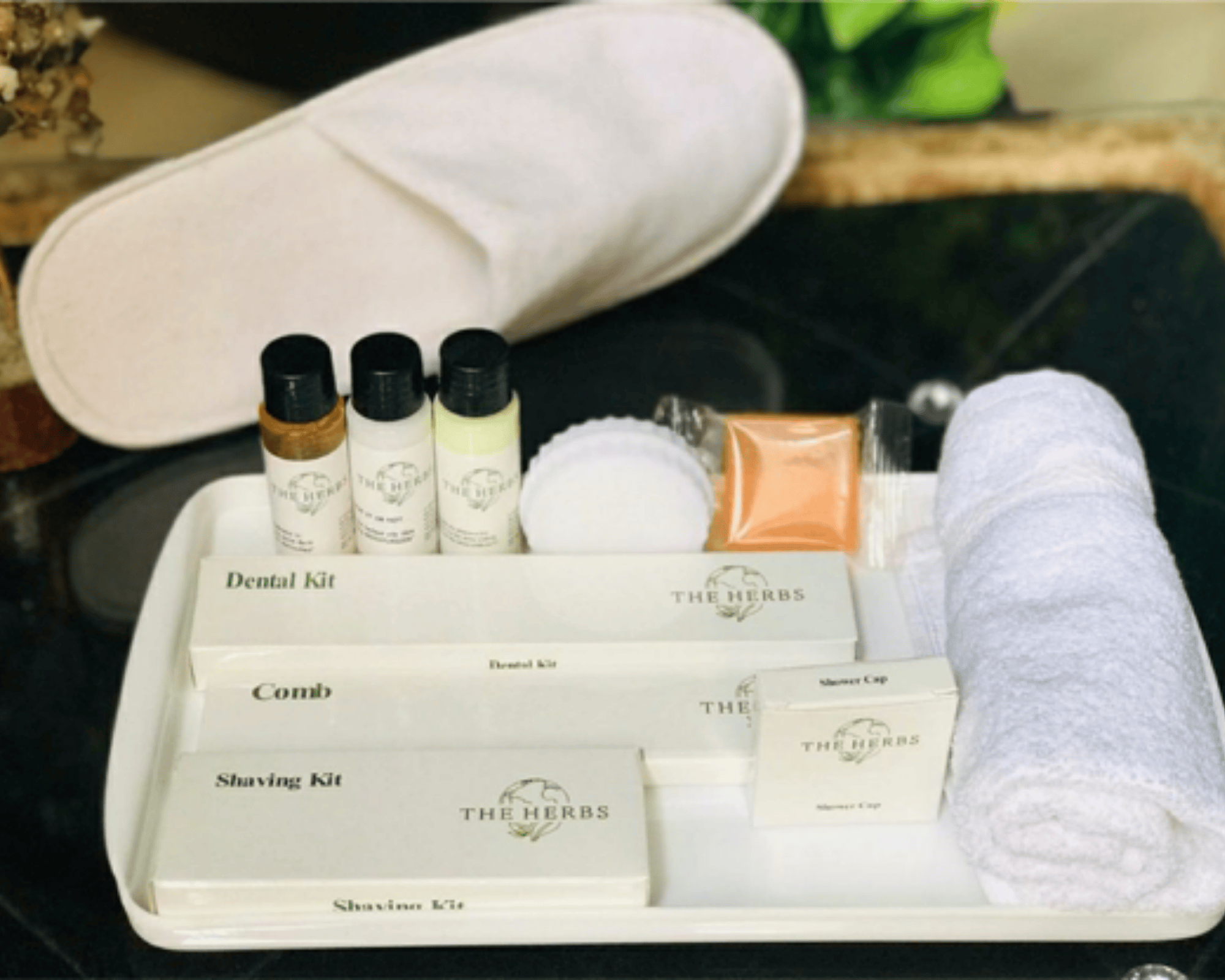 - Full Set: It includes a dental kit, shaving kit, shower cap, comb, soap, shampoo, body wash, conditioner, and disposable slippers.